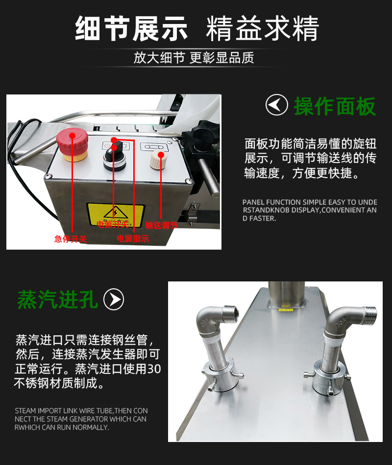 • 靈活性高:可以適應多種形狀和尺寸的產品包裝。通過調整蒸汽噴頭的位置和角度、輸送速度等參數,能夠對不同的產品進行有效的包裝。
