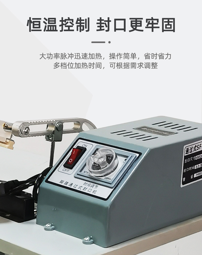 - 封口美觀度:要實(shí)現(xiàn)封口平整、無(wú)褶皺、無(wú)焦痕等美觀效果,需要精確的溫度控制和合適的功率。對(duì)于對(duì)封口美觀度要求高的產(chǎn)品,功率不能過大或過小,過大易造成焦痕,過小則封口不平整,通常 700 - 900W 的功率在合理調(diào)節(jié)下能滿足大多數(shù)此類需求。