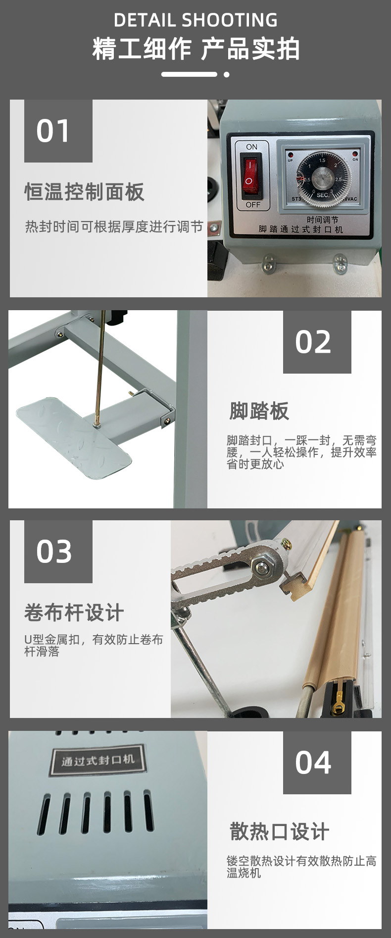 選擇合適的通過式封口機(jī)功率需綜合考慮包裝材料、包裝尺寸、生產(chǎn)速度、封口要求及環(huán)境因素等,以下是具體分析:
