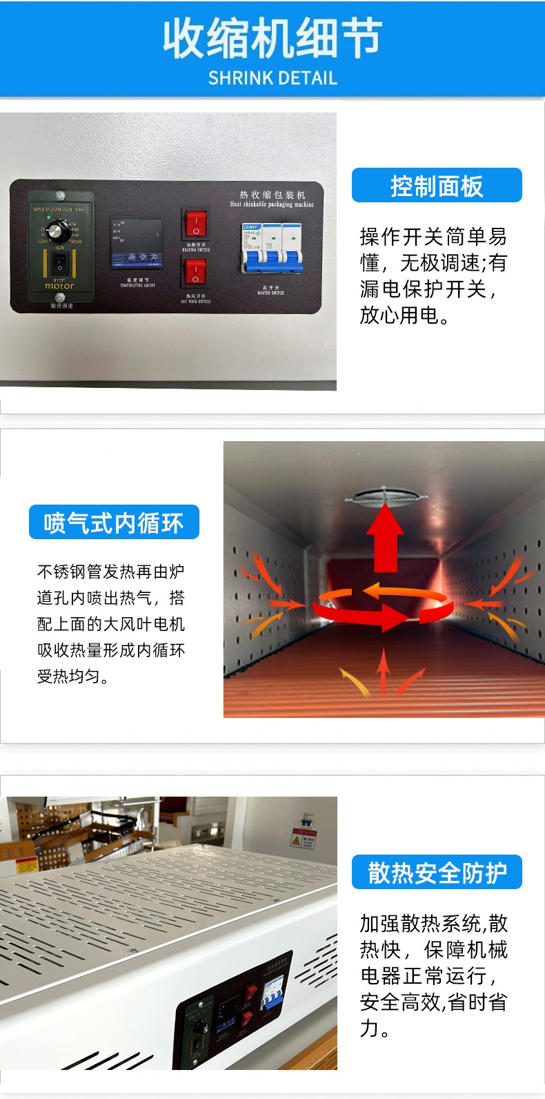 - 熱收縮效果:熱收縮機的收縮效果直接影響產品的包裝外觀。理想的熱收縮效果是使熱收縮膜緊密貼合產品表面,無褶皺、無破裂。這取決于熱收縮通道的溫度均勻性、風速調節(jié)以及輸送速度的配合等因素。
