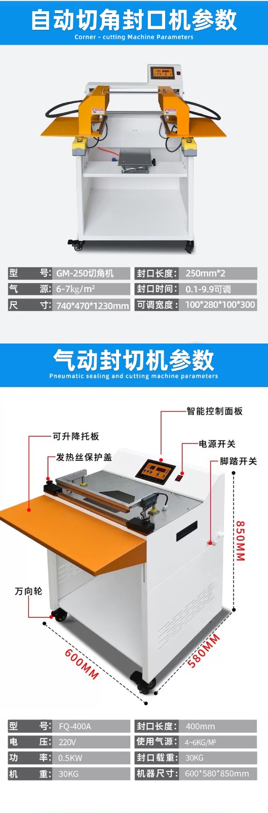 - 材料厚度:包裝材料的厚度也會影響設備的選型。較厚的材料需要更大的封口壓力和更高的熱封溫度,同時對切角刀具的要求也更高。因此,要根據材料厚度選擇具有相應功率和壓力調節(jié)范圍的設備。