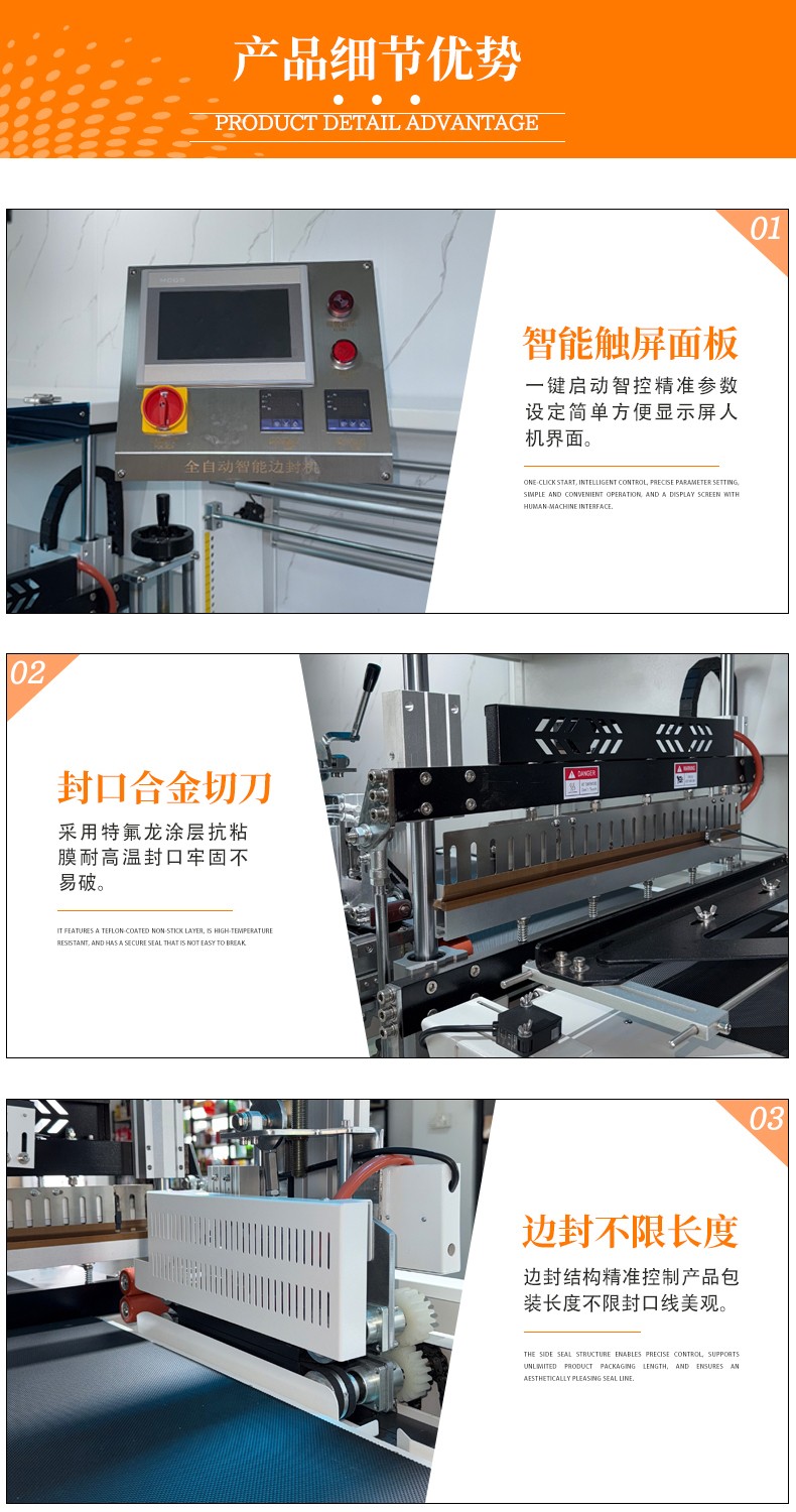 全自動(dòng)邊封熱收縮包裝機(jī)自動(dòng)化程度高,邊封設(shè)計(jì)使產(chǎn)品包裝長(zhǎng)度無(wú)限制