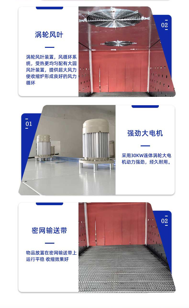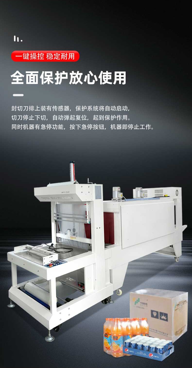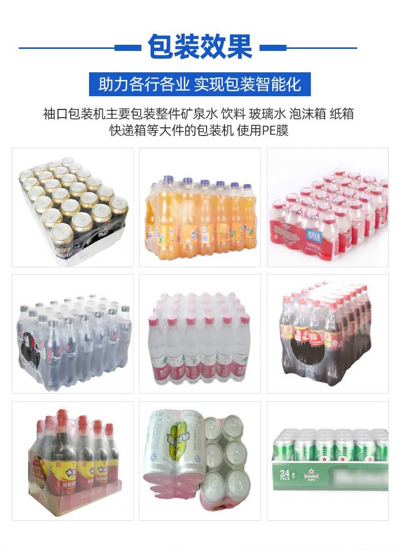 袖口式封切熱收縮包裝機(jī)憑借 高效密封、防塵防潮、貼合定型、便于堆疊運(yùn)輸 的核心優(yōu)勢,廣泛應(yīng)用于多行業(yè)的標(biāo)準(zhǔn)化包裝需求,尤其適配批量生產(chǎn)的規(guī)則 / 異形產(chǎn)品組合包裝。 一、食品飲料行業(yè)(最核心應(yīng)用領(lǐng)域) 瓶裝 / 罐裝產(chǎn)品組合包裝 礦泉水、啤酒、飲料、涼茶等 多瓶捆綁包裝(如 6 瓶 / 12 瓶 / 24 瓶組),無底托收縮膜直接包裹,替代傳統(tǒng)紙箱 / 膠帶,降低包裝成本 30%+,且透明膜可展示產(chǎn)品品牌; 罐頭、醬料瓶、食用油桶等 單瓶 / 多瓶密封包裝,防止運(yùn)輸過程中泄漏、氧化,延長保質(zhì)期(尤其適用于含油脂、易受潮食品)。 零食與烘焙產(chǎn)品包裝 餅干盒、薯片罐、面包禮盒等 多盒組合包裝(如 3 盒 / 6 盒套裝),收縮膜緊密貼合,避免禮盒散開,同時(shí)防塵防潮,提升禮盒檔次; 冷凍食品(如速凍水餃、湯圓)的 外箱收縮包裝,強(qiáng)化箱體密封性,防止冷鏈運(yùn)輸中受潮解凍。 符合食品級(jí)包裝標(biāo)準(zhǔn)(適配 PE/POF 無毒膜),包裝速度快(8-15 包 / 分),適配生產(chǎn)線連續(xù)作業(yè),同時(shí)透明包裝便于終端貨架展示。 高效量產(chǎn),適配規(guī)模化生產(chǎn) 全自動(dòng)機(jī)型包裝速度達(dá) 8-25 包 / 分鐘(單排)、15-40 包 / 分鐘(多排),支持 24 小時(shí)連續(xù)作業(yè),匹配食品飲料、日化等行業(yè)生產(chǎn)線節(jié)拍; 換產(chǎn)靈活,參數(shù)化存儲(chǔ) 100 + 組產(chǎn)品規(guī)格,切換僅需 2-5 分鐘,無需拆卸機(jī)械部件。 包裝效果優(yōu)質(zhì),防護(hù)與展示兼具 熱收縮膜緊密貼合產(chǎn)品輪廓,形成密封、防潮、防塵、防刮的立體包裝,降低運(yùn)輸損耗率至 0.5% 以下; 支持透明膜 / 彩印膜包裝,透明膜可展示產(chǎn)品細(xì)節(jié),彩印膜可印刷品牌 LOGO 與促銷信息,兼顧防護(hù)與品牌營銷。 成本可控,降本增效顯著 無底托包裝設(shè)計(jì)替代傳統(tǒng)紙箱、膠帶,包裝材料成本降低 30%-50%,同時(shí)節(jié)省倉儲(chǔ)與運(yùn)輸空間 40%; 采用紅外加熱或石英管加熱技術(shù),比傳統(tǒng)電熱絲節(jié)能 30%-50%,待機(jī)自動(dòng)降功率,長期運(yùn)行成本更低; 全自動(dòng)機(jī)型僅需 1 人巡檢,降低人工成本 80%,避免人工操作誤差。 兼容性強(qiáng),適配多場景需求 可包裝方形、圓形、異形等多種形態(tài)產(chǎn)品,支持單件 / 多件組合包裝,產(chǎn)品尺寸覆蓋 50mm×30mm×20mm 至 800mm×600mm×500mm(可定制更大規(guī)格); 適配 PE、POF、PVC 等多種熱收縮膜,滿足食品級(jí)(FDA/ROHS)、醫(yī)藥級(jí)(GMP)、工業(yè)防靜電等不同行業(yè)標(biāo)準(zhǔn)。 智能化操作,易上手易維護(hù) PLC 觸控屏可視化操作,參數(shù)設(shè)置直觀,普通工人 1-2 小時(shí)即可獨(dú)立操作,支持故障自動(dòng)報(bào)警與修復(fù)提示; 模塊化結(jié)構(gòu)設(shè)計(jì),封刀、加熱管等易損件更換便捷,日常維護(hù)僅需清潔、緊固,維護(hù)成本降低 40%。 環(huán)保合規(guī),符合綠色生產(chǎn)趨勢 采用可回收、無毒環(huán)保膜材,無粉塵、無異味排放,符合全球綠色包裝政策; 減少紙箱、膠帶等不可降解材料使用,降低快遞垃圾與資源浪費(fèi),適配電商、物流行業(yè)環(huán)保要求。