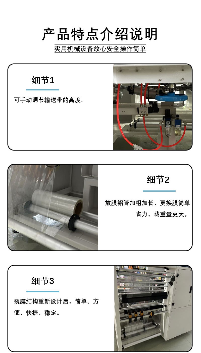 配備急停按鈕、封刀防燙傷保護(hù)罩、超溫報(bào)警等多重安全裝置,保障操作人員人身安全;設(shè)備關(guān)鍵部件采用標(biāo)準(zhǔn)化設(shè)計(jì),結(jié)構(gòu)簡(jiǎn)單易拆解,日常清潔、換膜、維護(hù)無需專業(yè)技術(shù)人員,大幅降低設(shè)備運(yùn)維成本與停機(jī)時(shí)間。
