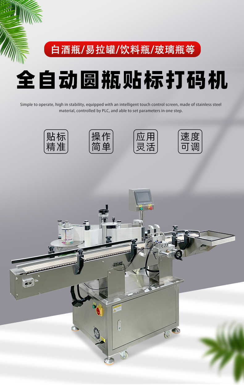 圓瓶類產品的貼標,可貼單標和雙標,正背雙標間距可靈活調整,部分機型還具備錐形瓶貼標功能。精準定位、高效智能、靈活兼容與合規耐用,可顯著提升產線自動化與貼標良率。