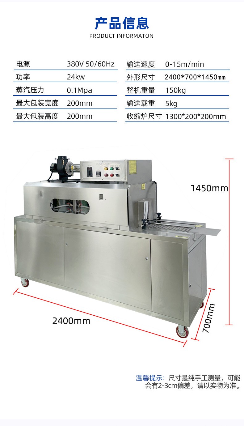 蒸汽收縮機的蒸汽能夠全方位地接觸薄膜,使薄膜各個部位受熱均勻,收縮效果一致