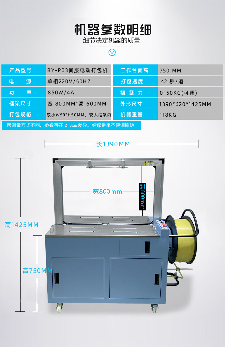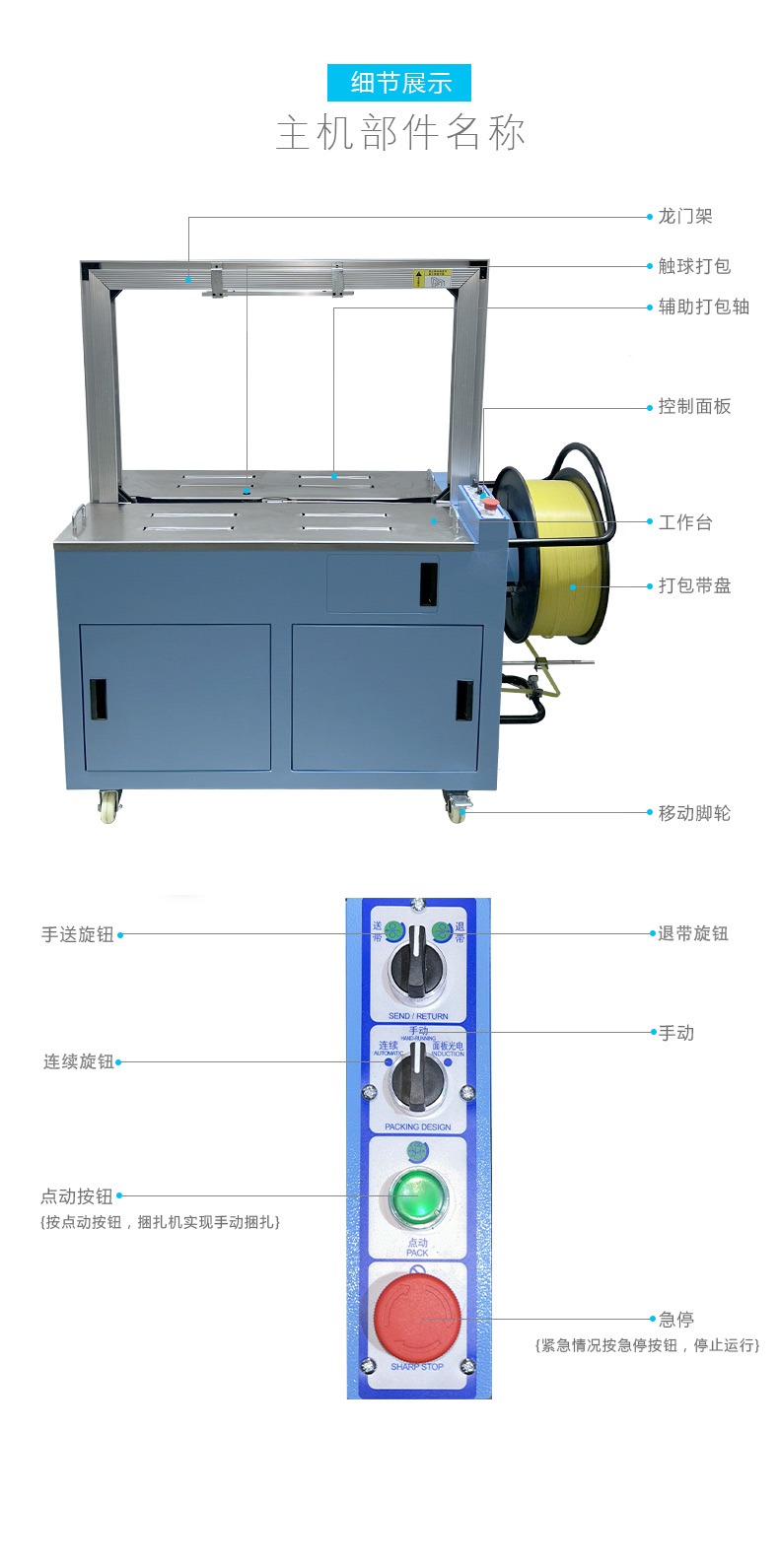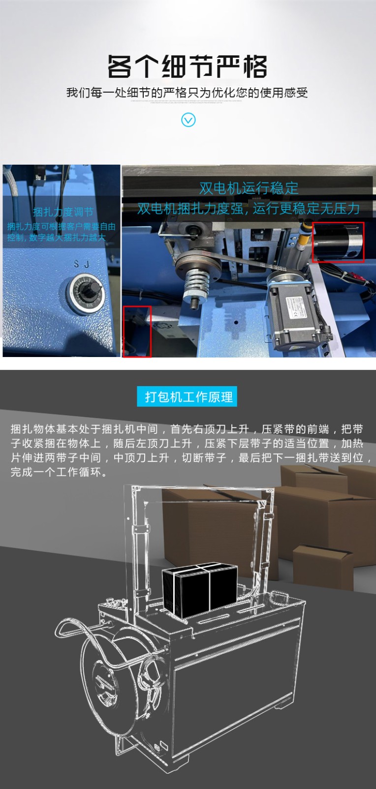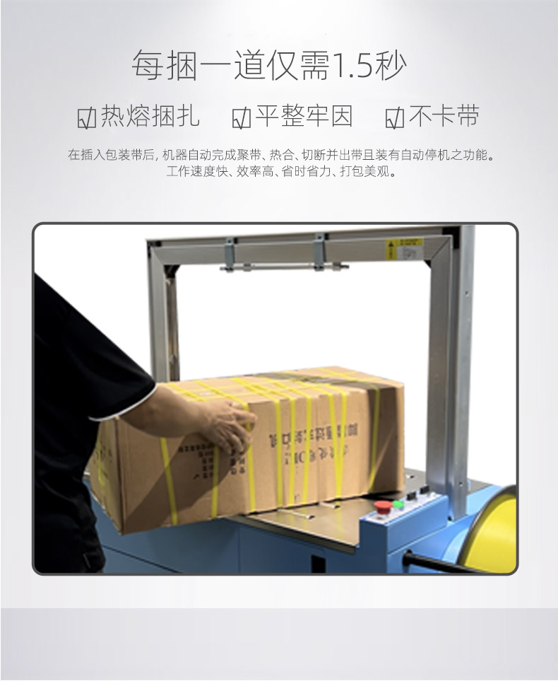 • 半自動打包機:結構相對簡單,價格較為便宜,適合預算有限、打包量不大的用戶。不過,由于需要人工參與部分操作,長期來看,人工成本可能相對較高。