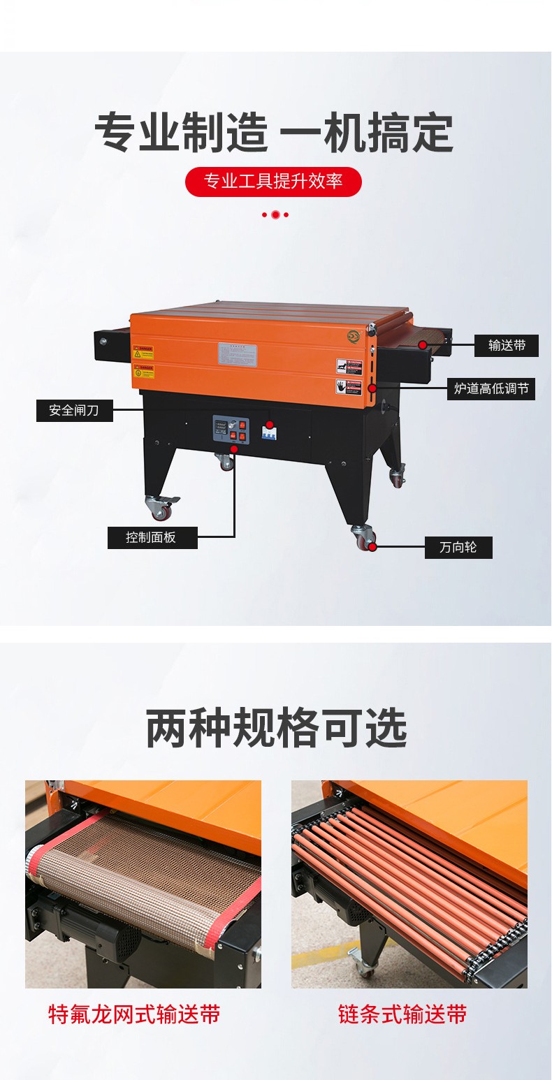 • 產品特性:要考慮產品的尺寸、形狀、重量等因素。如果產品體積較大或重量較重,需要選擇具有足夠動力的輸送系統和穩定的機身結構的熱收縮機。對于形狀不規則的產品,最好選擇噴氣嘴分布合理、能夠保證熱空氣均勻覆蓋的機型。