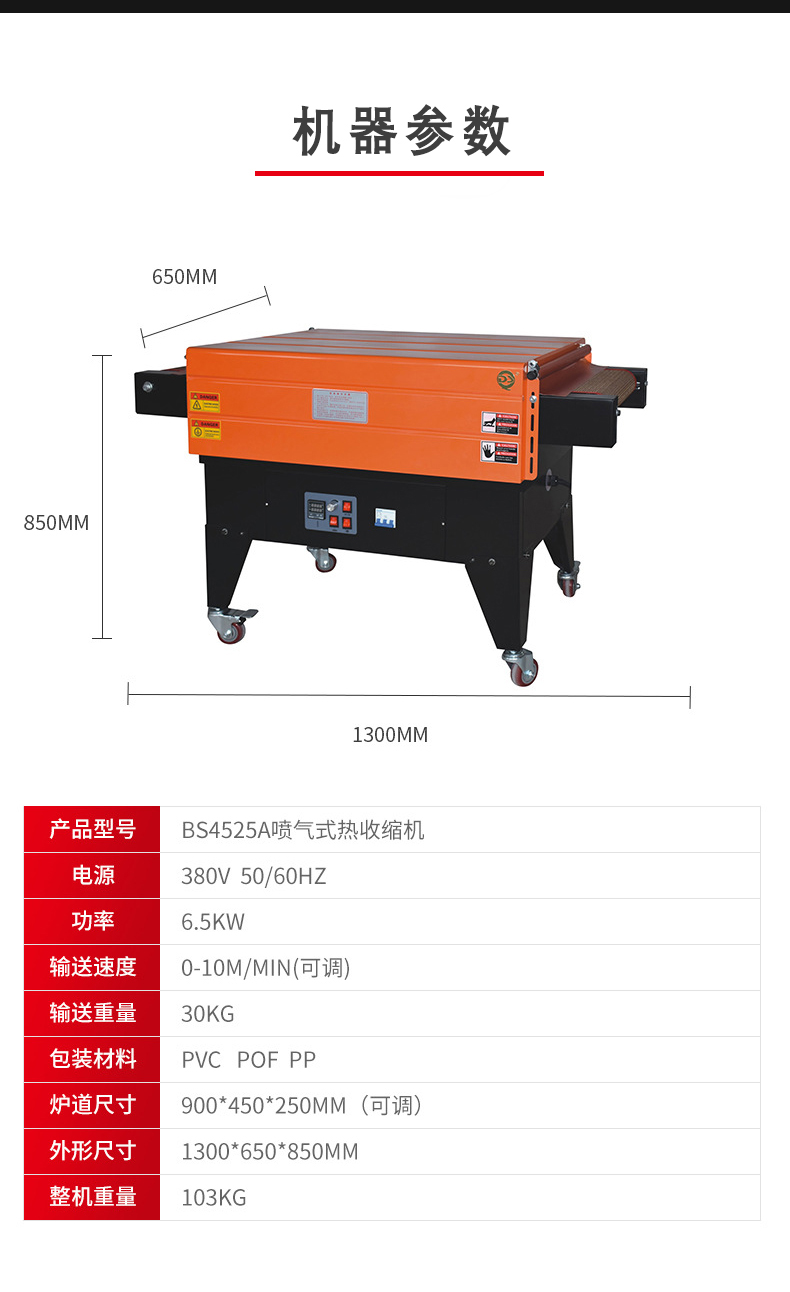 • 收縮溫度范圍:一般為 120 - 200℃。不同的熱收縮薄膜有不同的最佳收縮溫度,在選型時要考慮機器的溫度范圍是否能夠滿足所使用薄膜的要求。例如,PVC 薄膜的收縮溫度一般在 140 - 160℃,POF 薄膜的收縮溫度約為 160 - 180℃。