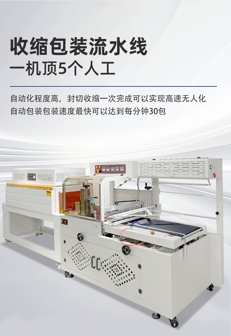 全自動(dòng)封切熱收縮包裝機(jī)是一種高度自動(dòng)化的包裝設(shè)備,主要用于對(duì)各類產(chǎn)品進(jìn)行熱收縮包裝,通過封切和熱收縮等操作,使包裝膜緊密貼合產(chǎn)品,達(dá)到保護(hù)和美觀的效果。以下是具體介紹:
