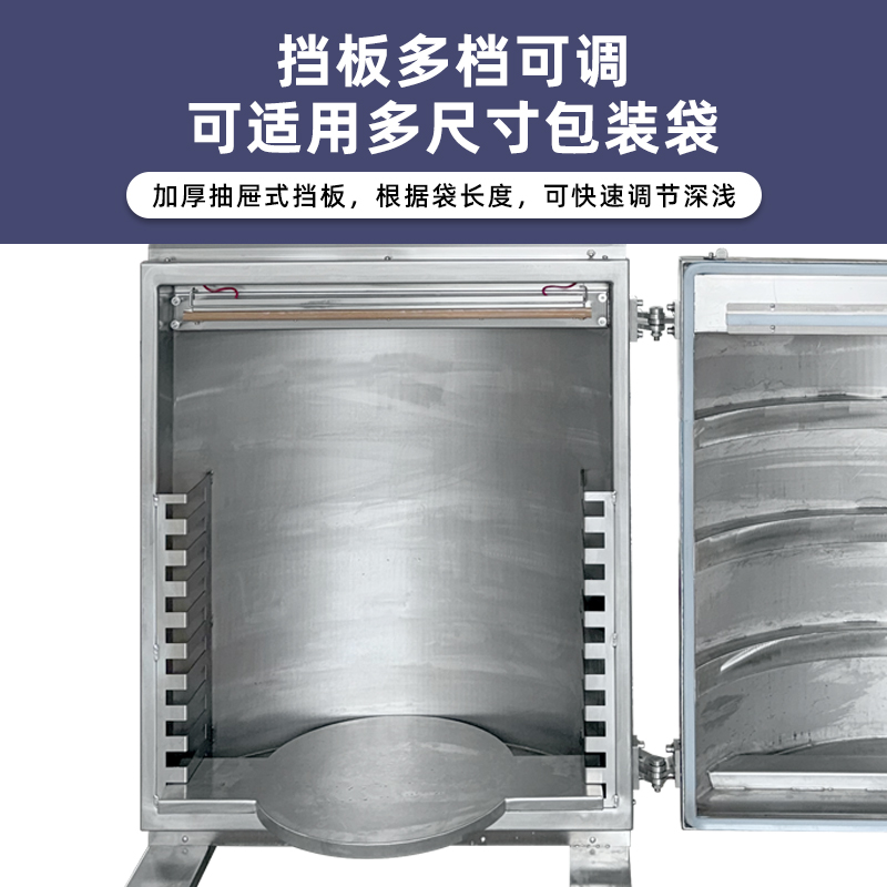 • 大容量真空室:立柜式真空包裝機的真空室容積較大,如 DZ-650L 型號,其熱封有效尺寸可達 650×8mm,可同時處理大批量食材或大尺寸包裝,能滿足整只火腿、海鮮禮盒、大桶粉末顆粒等特殊形狀物品的封裝需求49